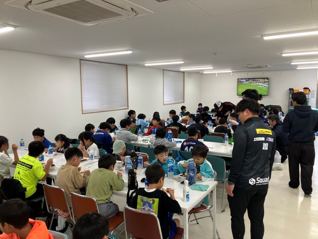 残念ながら、雨天のため、ピッチで予定していた運動会は中止になりましたが、クラブハウス内でのこども食堂のみ開催しました。
