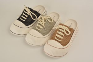 フットウェア事業 デイリーサンダル、デイリーシューズの企画開発及び卸売事業です。 トレンドを少し取り入れた値ごろ感のある履きやすいアイテムが特徴であり、各地区担当により北海道~沖縄までの営業エリアとして靴チェーン、靴専門店、GMS靴売り場、ホームセンター靴売り場に展開しています。 商品の企画開発及び意匠登録を当社で行い、中国の協力会社で製造しています。 年間アイテム数約120点のうち、春夏商品としてのサンダルが主で全体の60%、秋冬商品及びスニーカーはぞれぞれ20%、20%です。