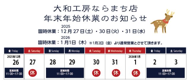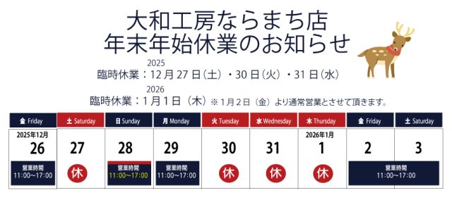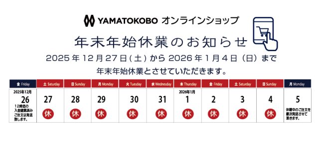 ■年末年始休業日:2025年12月27日30日31日・2026年1月1日